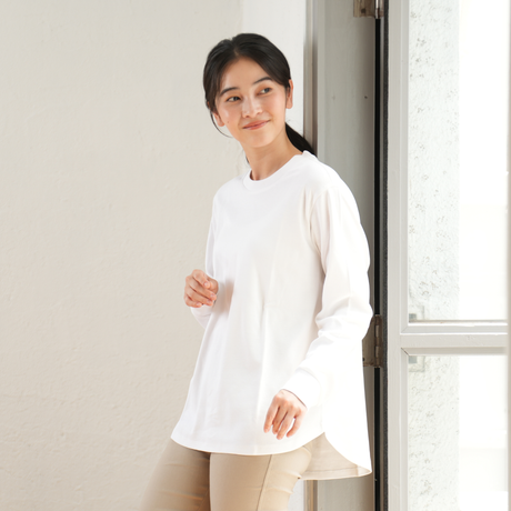 プレミアムファインコットンクルーネック長袖Tシャツ
