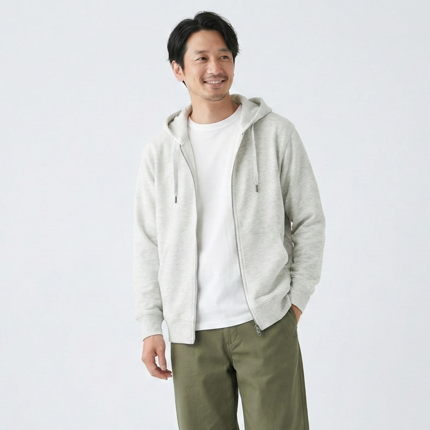 裏起毛スウェットダブルジップパーカー - アイボリー / M ...は取り寄せ中で入荷次第発送します。