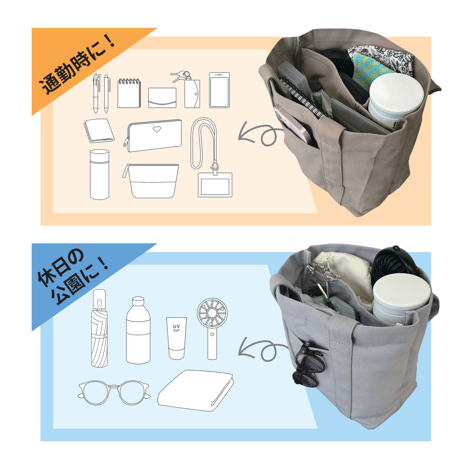 出し入れ簡単デイリートートバッグ