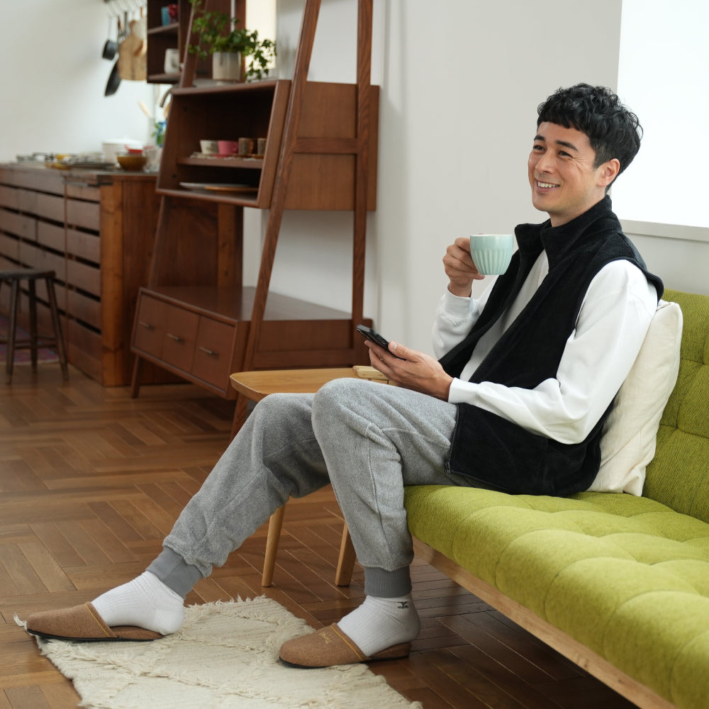 肩回りの窮屈感もなく寒さ対策もしつつ動きやすさも備えたアイテムです。室内のお仕事着や軽作業着におすすめです。