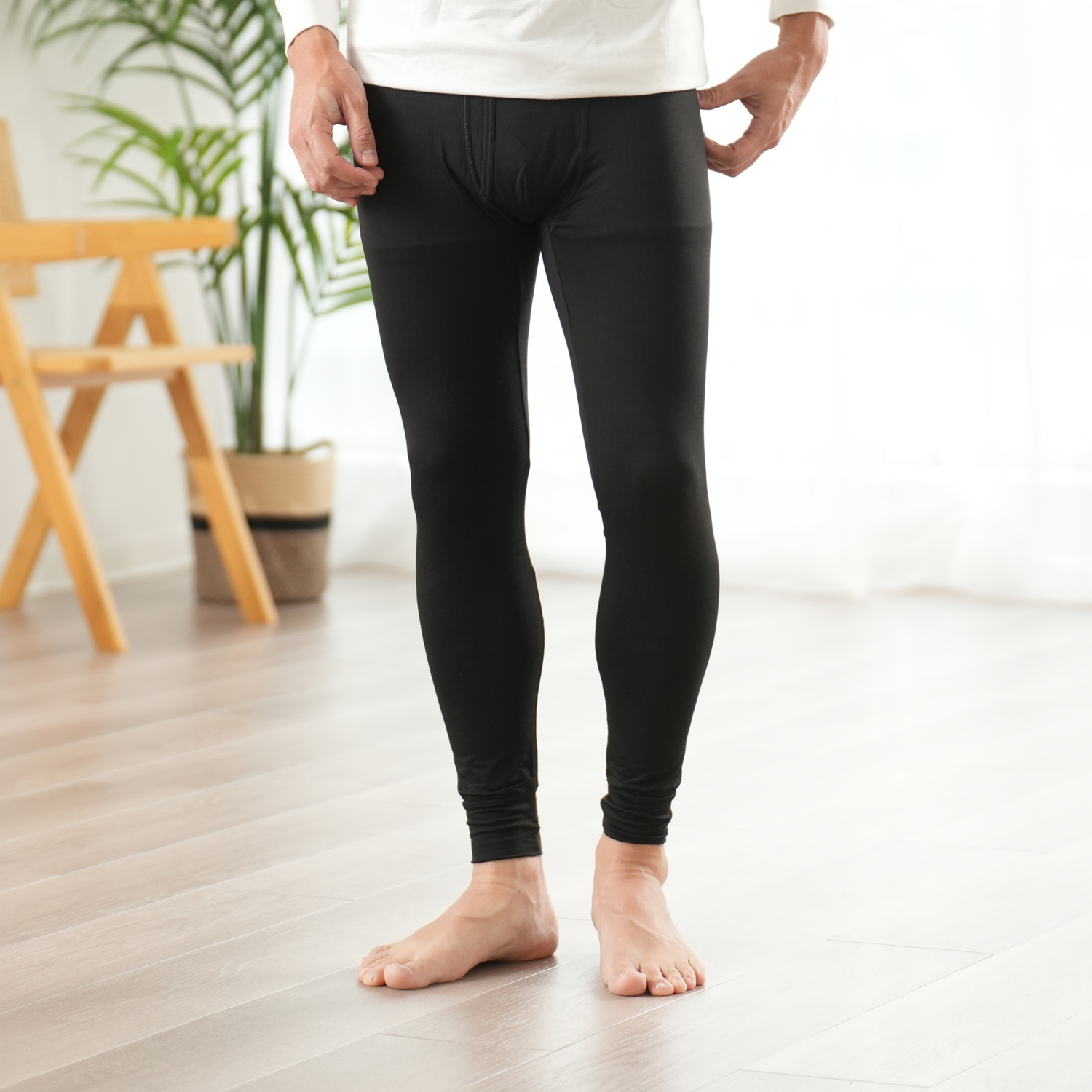 心地よいフィットで、お腹周り足首までしっかり暖めます。スーツでもジーンズの下でもごわつかない薄さ。圧迫感がなく動きやすい快適な着心地なので部屋着でもアウトドアシーンにも最適です。