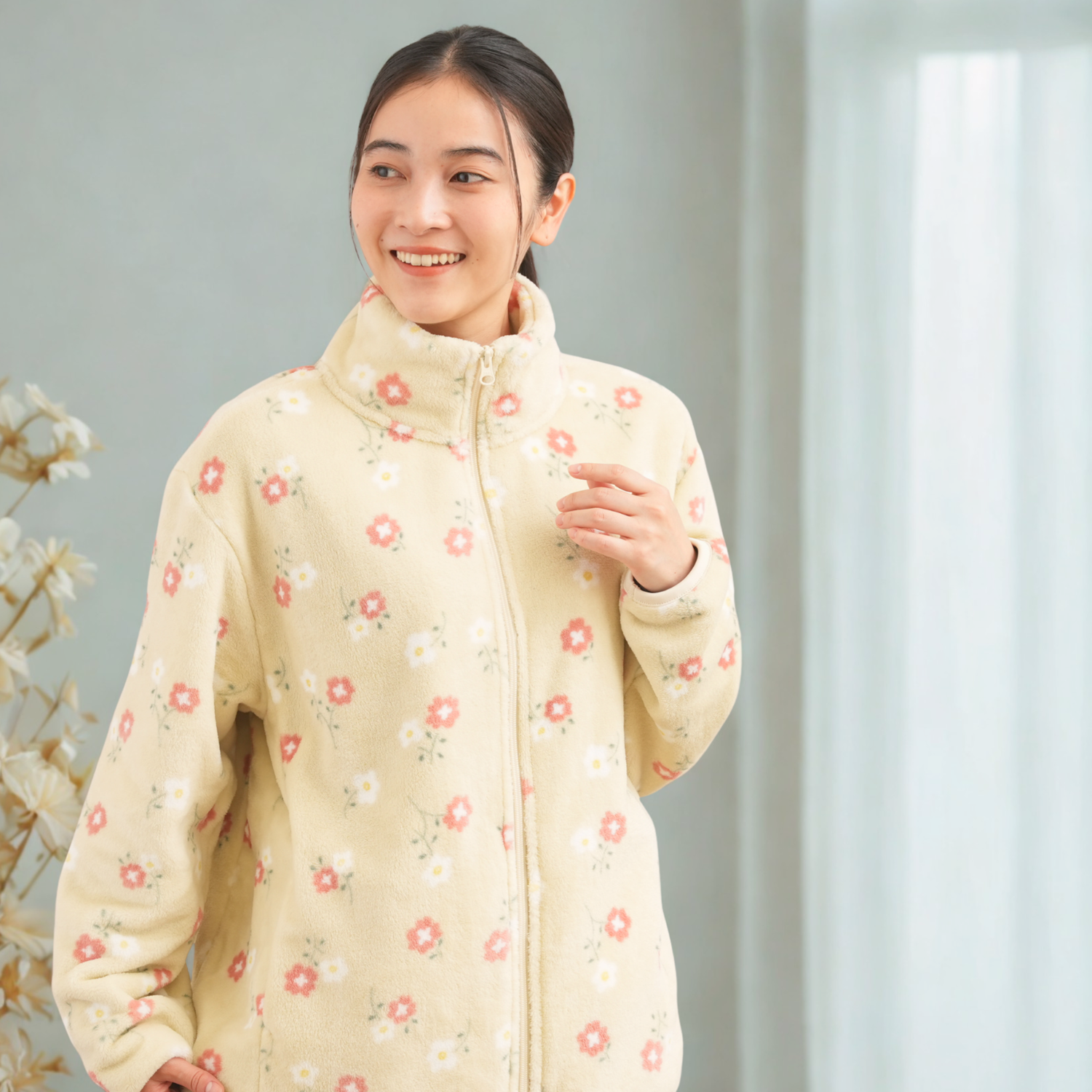 シルキーフリースジャケット総柄